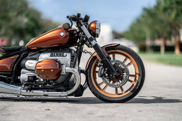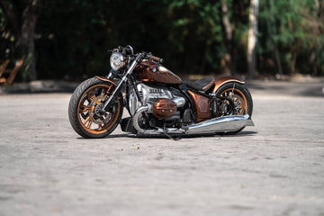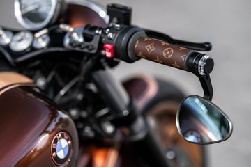 We love experimenting with BMW Motorrad, as we see immense potential for customization. The concept behind this particular build revolves around a Louis Vuitton-inspired theme. The main body is painted in BMW Alpina B7, complemented by Maybach Sand accents.