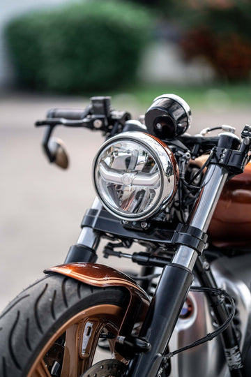 One of the standout features of this build is the full air ride suspension. The rear is controlled by an Arnott system, while the front suspension is fully custom-built. ABM Multiclip clip-ons are paired with Motogadget blinkers and a Beringer brake and clutch assembly.