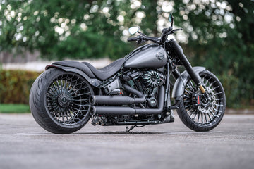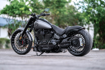 One of the most powerful motorcycles we've ever built. The original 117ci engine has been upgraded to a 131ci crate engine. Lightweight R21 front and R18 rear wheels provide a smooth, comfortable ride with exceptional control. The front suspension features Öhlins progressive shocks, while the rear is equipped with an Arnott air ride system.