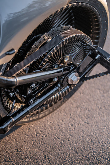 The key feature of this motorcycle is the new wheel design from Daytona27 and the Rick’s Motorcycles rear brake relocation kit. Finally, there’s an affordable solution for a stock swingarm that hides the rear brake. We'll be making an additional post about this relocation kit soon.