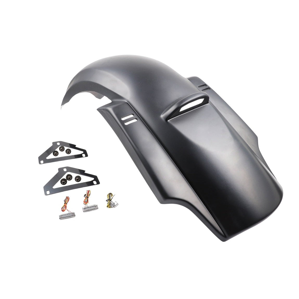 This complete Cult-Werk rear conversion "Custom" V1 kit is designed for Harley-Davidson Touring models from 2014 onward, including Street Glide™, Road Glide™, Road King™, and their special editions like Ultra and Limited. It features an ABS rear fender crafted with advanced 5-axis CNC machining for OEM-level quality, available in a paint-ready finish or glossy black. The kit includes integrated LED tail, brake lights, and indicators, plus a wiring harness with a resistor for correct flash frequency, ensuring true plug-and-play installation. Mounting hardware and reinforcement brackets are provided for a secure fit over the original metal fender.