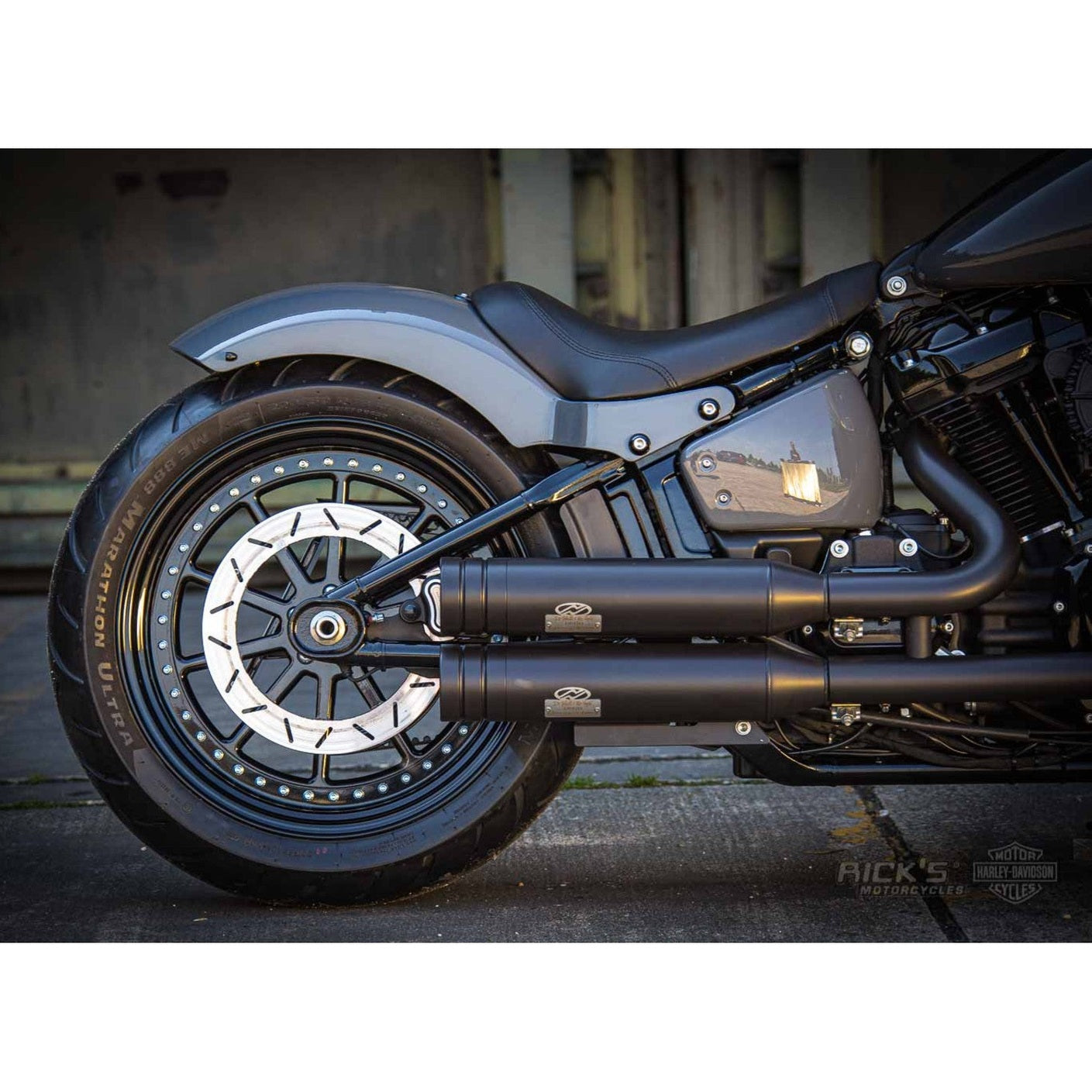Rick’s Motorcycles rear fender for Softail M8 models from 2018 onward features a narrow frame and standard length, designed specifically for Harley-Davidson Softail M8 bikes. Manufactured using an advanced production process, it ensures superior fit and quality. Crafted by hand from steel with integrated 10 mm struts, it accommodates 180 or 200 mm tires. Compatible with Street Bob, Standard, Low Rider, Low Rider S, Sport Glide, Fat Bob, Slim, Deluxe, and Heritage models, this fender is passenger-friendly and comes complete with mounting hardware and certification, including Swiss documentation.