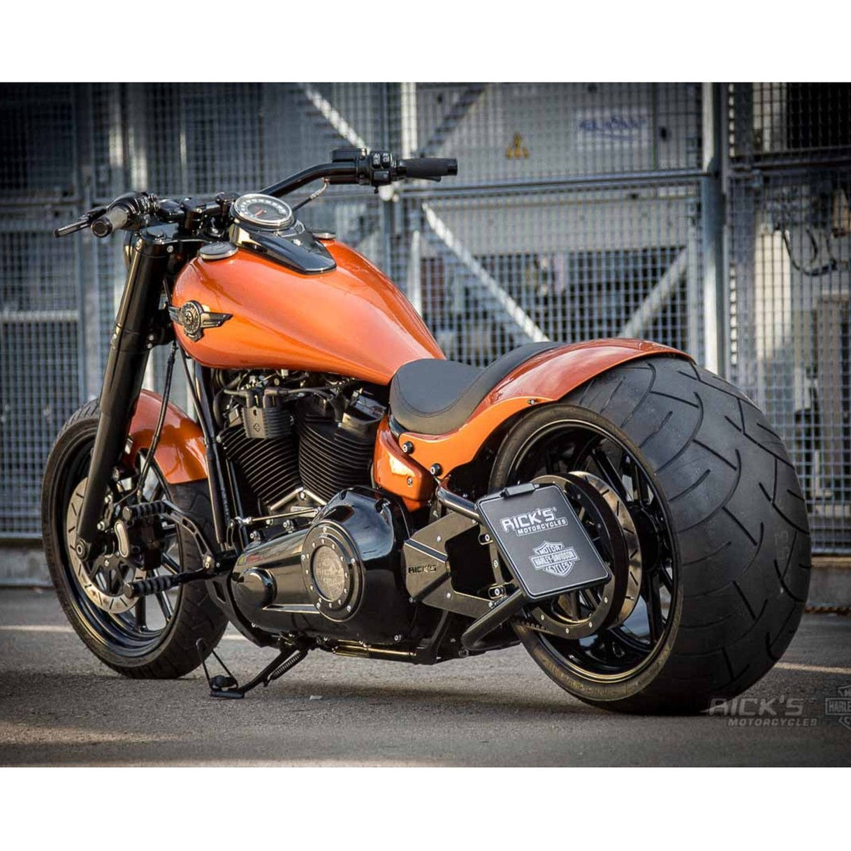 Designed for Harley-Davidson Softail M8 models from 2018 with a narrow frame (excluding Breakout, Fat Boy, and FXDR), this rear fender features a new production process and special welding gauges for enhanced fit and durability. Handmade from steel with integrated 10 mm struts, it accommodates 300 mm tires and is fully compatible with Rick's 300 kit. The fender supports pillion riders and comes complete with all necessary mounting hardware, ensuring a precise and reliable installation.
