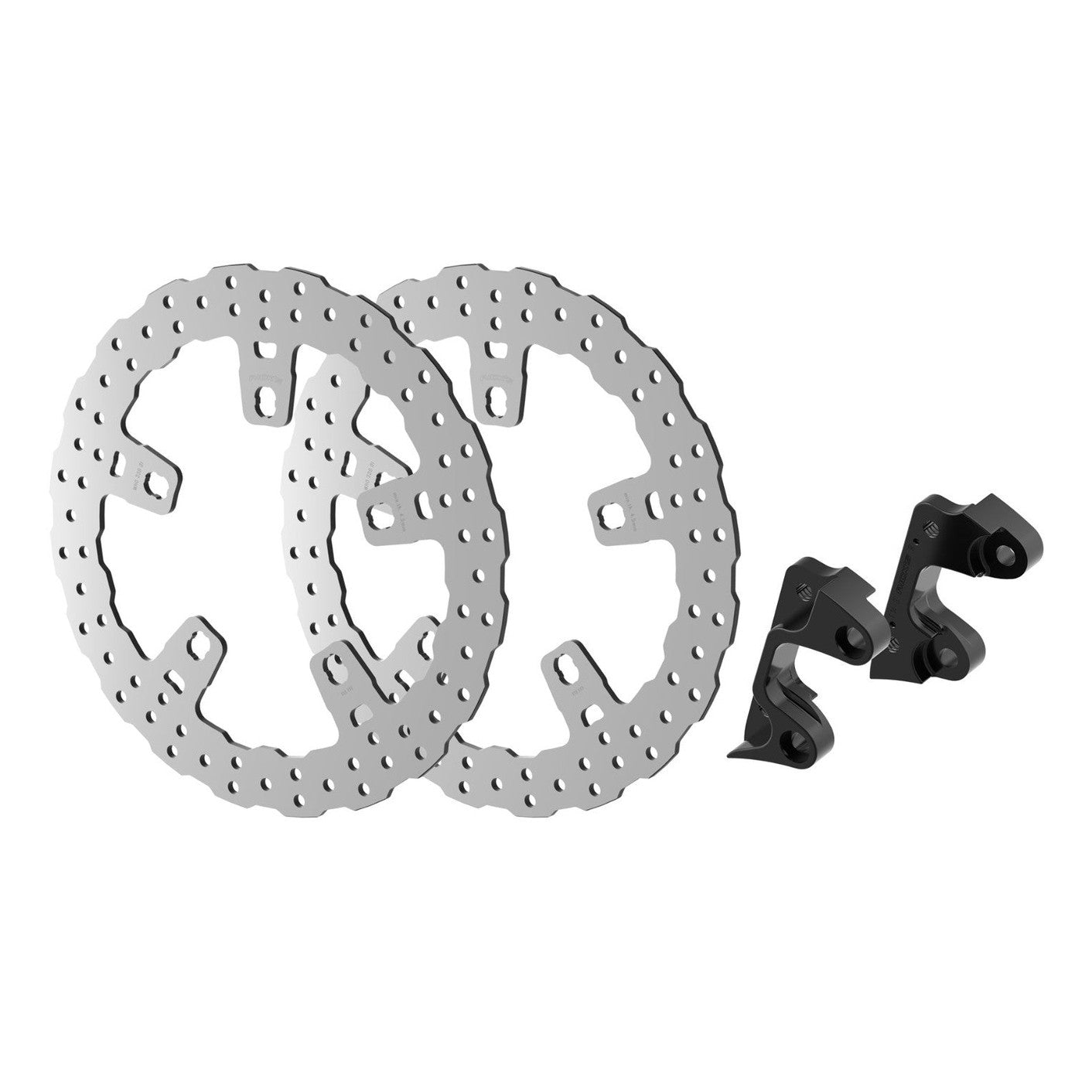 Rick's Wave Brake Rotors for Touring models (2014-2023) feature a high-performance stainless steel wave design that enhances both braking efficiency and aesthetics. Engineered with advanced production methods, these rotors deliver exceptional reliability, strong deceleration, and consistent performance. The floating, perforated braking surface reduces noise and improves responsiveness. Available in 300 mm and 330 mm sizes, they offer excellent heat resistance for stable braking under all conditions. Compatible with OEM, accessory, and radial calipers, these rotors replace HD 41500017 and fit models with a 170 mm bolt circle, working seamlessly with all standard brake pads.